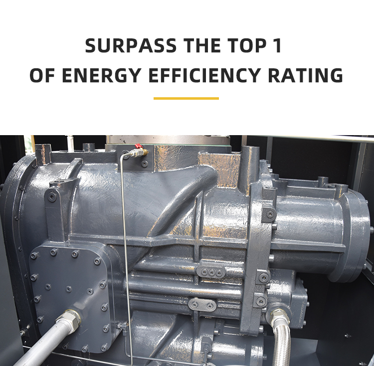 Independent intake and exhaust duct design:Precisely engineered airflow pathways ensure independent air intake for the filter, motor, and electrical cabinet. This prevents recirculation of heated air from within the enclosure, maintains intake air purity, reduces component wear caused by high temperatures and contaminants, and extends equipment service life. Multi-Stage High-Efficiency Cooler: A segmented design minimizes stress and deformation from thermal expansion and contraction, enhancing operational stability. It also simplifies disassembly and reassembly, reducing maintenance complexity and costs. Lift-and-Rotate Oil-Gas Separation Tank:All pipelines are integrated into the tank structure, eliminating fittings on the tank cover. This innovative design resolves the complexity of traditional piping connections. Advanced Compression Technology: By combining large-rotor, low-speed design principles with two-stage compression, the system achieves high efficiency even at low pressure ratios. The full product line exceeds China' s Grade 1 energy efficiency standards by 3%-5%, delivering energy savings of over 20%.