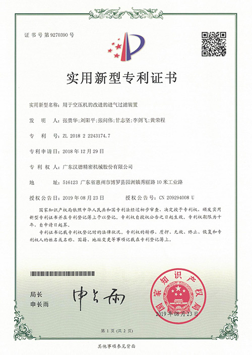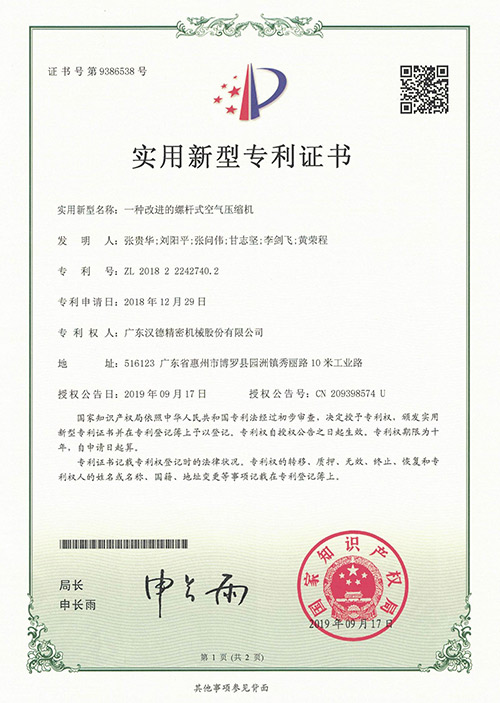 HANDE owns a number of patent certifications. Relying on years of rich experience in the industry of air compressor andmastery of international technology,it has developed a professional research and development team who constantlyinnovating to create the most suitable, highly efficient and energy-saving air compressor for customers.
